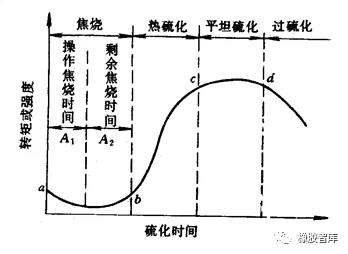 根据硫化历程分析,可将硫化曲线分成四个阶段,即焦烧阶段、热硫化阶段、平坦硫化阶段和过硫化阶段。